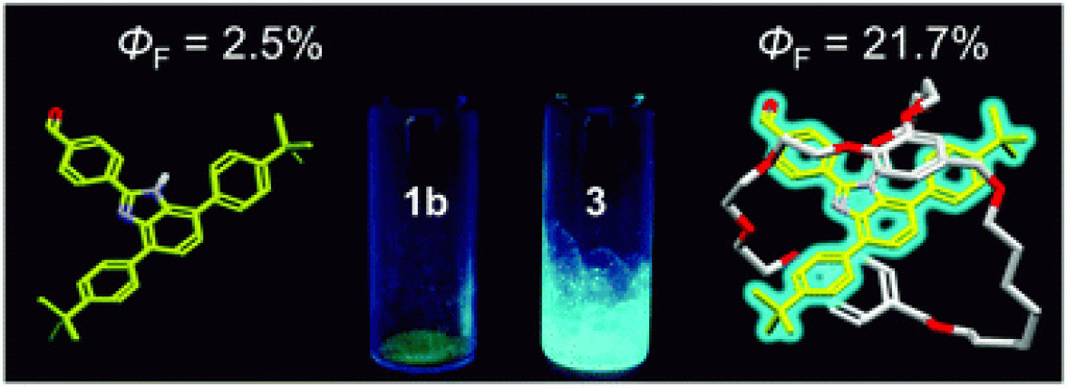 Fluorescence emission enhancement of a T-shaped benzimidazole with a mechanically-interlocked 'suit'